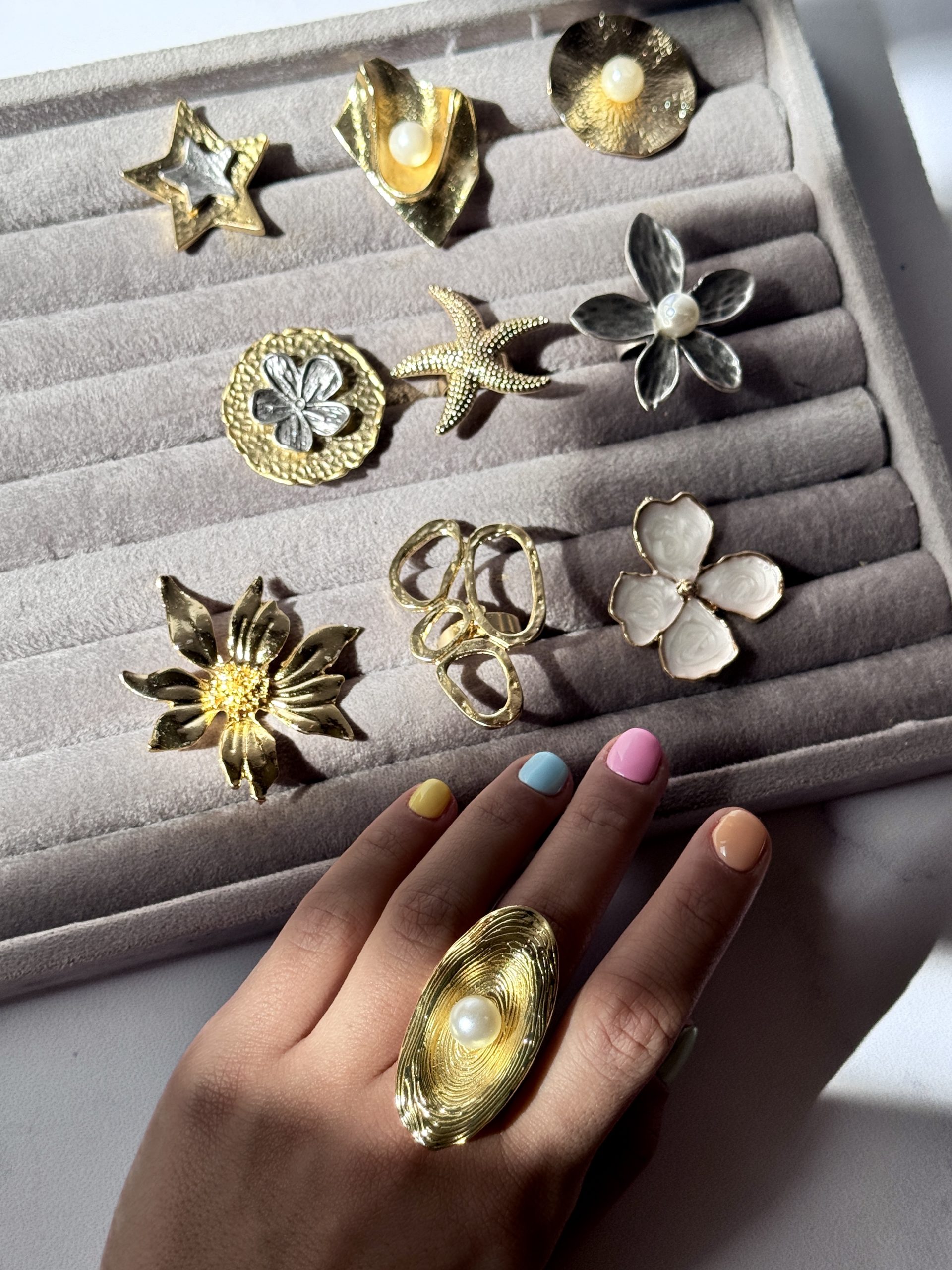 قطر یکی از انگشتراتون که اندازتون هست رو با خط کش اندازه بگیرین ، مثلا شد ۱۸ میلی متر ، تو جدول میتونین سایزش رو مطابقت بدین که میشه سایز ۸ و لارج خودمون